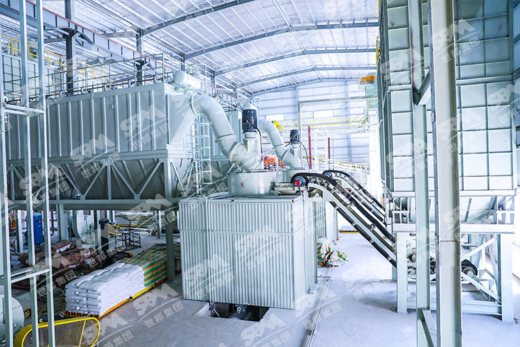LUM1125超細立式磨粉機、SCM1250超細微粉磨粉機、二次選粉系統、成品物料輸送系統、全自動包裝碼垛系、集中控制系統